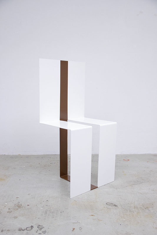 J’eus soudainement envie de rendre hommage à ce petit objet si simple, trois bandes en carton, en dessinant une chaise qui reprendrait ses proportions exactes.